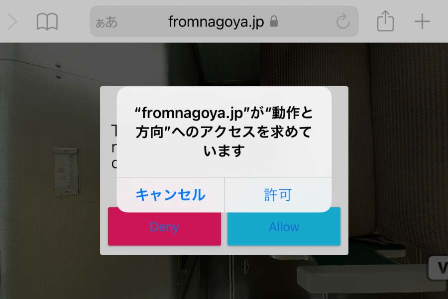 タップすると、スマートフォンのジャイロセンサーの使用許可画面(英語と日本語の2つ)がでますので、Allow、許可の順番にタップします。