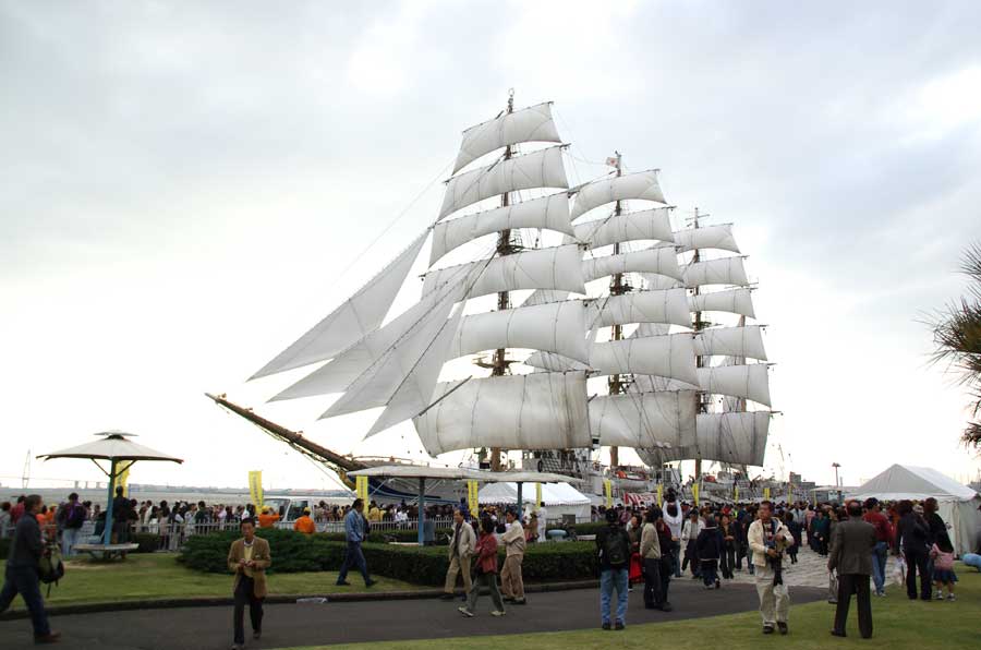 11月10日、帆船が一斉に帆を広げる訓練「セイルドリル」の時間には多くの人々が訪れ、その美しさと圧倒的な迫力に感嘆の声を上げた。